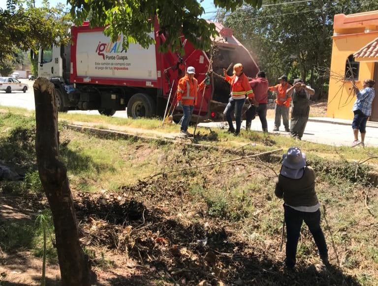 Iguala, Gro., febrero 11.- Las brigadas de barrido a cargo del director de Limpia, Rubén Torres Olguín, y los vecinos del fraccionamiento del Río, trabajaron de manera unida para dejar limpias sus calles y áreas verdes, con lo cual siguen poniendo guapa a Iguala, como ha indicado el presidente municipal, David Gama Pérez, además, pusieron el ejemplo de poner la basura en su lugar y mantener un ambiente de «basura cero».