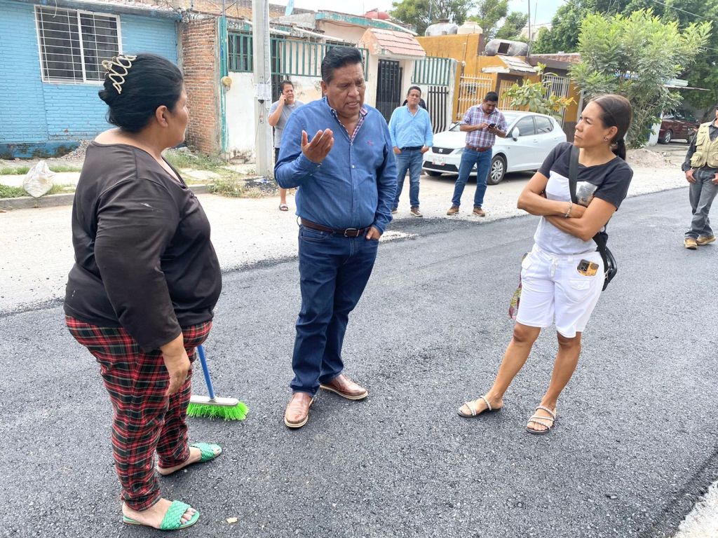 Iguala, Gro., febrero 16.- El presidente municipal de Iguala, David Gama Pérez, realizó un recorrido de supervisión por la calle Lázaro Cárdenas, en la colonia Infonavit, donde se lleva a cabo una obra de pavimentación con asfalto.