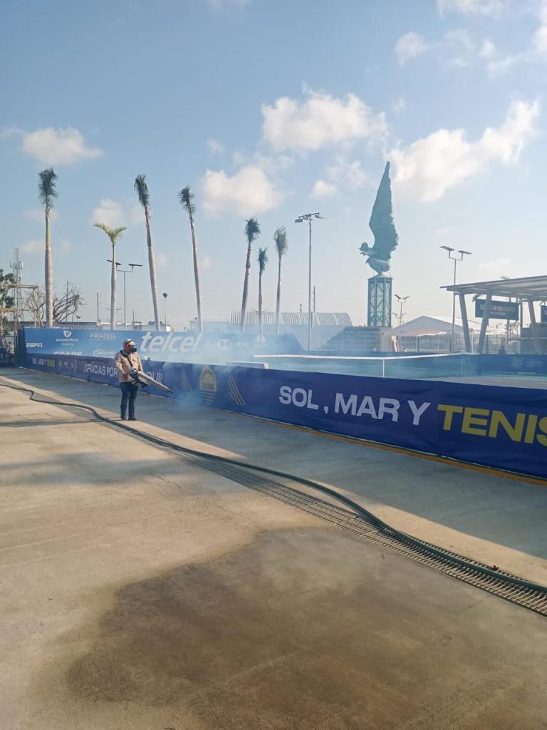 Siguiendo las instrucciones de la gobernadora Evelyn Salgado Pineda de proteger a la población y a los visitantes del Abierto Mexicano de Tenis, brigadas de trabajadores de Vectores realizan recorridos en la sede del torneo y zonas circundantes, donde aplican productos que combaten al mosquito transmisor del virus sin dañar la salud de las personas.
