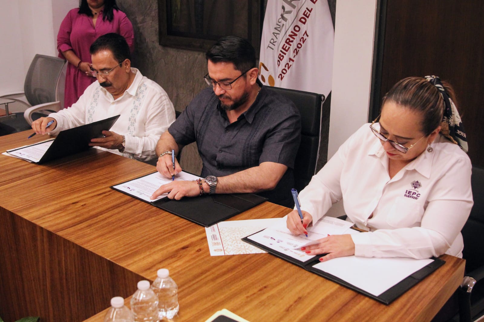 A la firma del convenio asistieron el Coordinador Técnico del Sistema Estatal del Registro Civil, Roberto Barreto Bohórquez; el secretario General de Acuerdos del Tribunal Superior de Justicia del Estado; Edgardo Mendoza Falcón; el secretario Ejecutivo del IEPC, Pedro Pablo Martínez Ortiz; el consejero electoral Amadeo Guerrero Onofre y las consejeras electorales Cinthia Citlali Díaz Fuentes, Vicenta Molina Revuelta y Dulce Merary Villalobos Tlatempa.