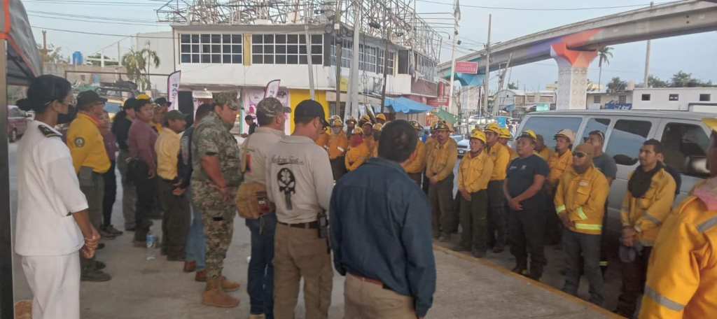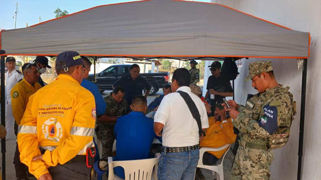 En el control y combate del siniestro, participan elementos de la Secretaría de Gestión Integral de Riesgos y Protección Civil, Secretaría de Marina, Policía Estatal Ecológica, Comisión Nacional Forestal, Secretaría de la Defensa Nacional, Bomberos y Protección Civil Municipal.