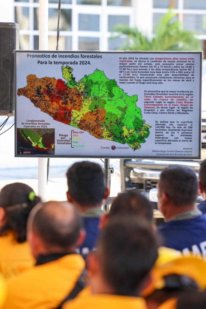 Con la presencia de representantes de la Secretaría de Gestión Integral de Riesgos y Protección Civil del Estado, la Comisión Nacional Forestal (Conafor), la Secretaría de Marina, la Secretaría de la Defensa Nacional (Sedena), entre otros, la mandataria estatal refrendó su compromiso absoluto para trabajar en este importante tema, de manera particular ante el pronóstico de la temporada 2024, en donde se prevé que en el estado puedan presentarse alrededor de 200 incendios forestales, con una posible afectación de más de 110 mil hectáreas.