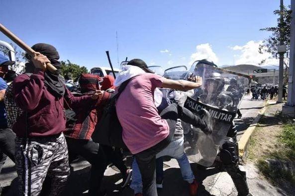 Pero también es necesario señalar que en ese enfrentamiento con las fuerzas del orden, dos normalistas vestidos con camisas rojas, rociaron con gasolina una bomba de combustible en la gasolinera “Eva II” y le prendieron fuego para evitar que la policía los desalojara. Un trabajador de dicha gasolinera, Gonzalo Miguel Rivas Cámara, tomó un extintor y roció la bomba para evitar que las llamas se propagaran.