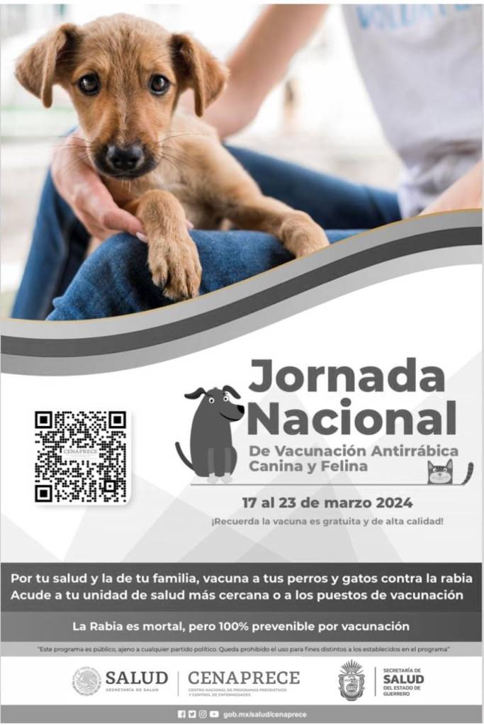 Jornada Nacional de #Vacunación #Antirrábica Canina y Felina 2024. Vacuna a tus perros y gatos desde el primer mes de edad, acude a tu Centro de Salud más cercano.