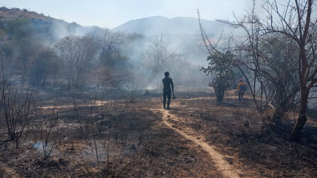 Iguala, Gro., marzo 23.- Personal de Protección Civil Iguala, Ejército Mexicano y Guardia Nacional acudieron a sofocar 3 incendios en diferentes partes de la ciudad, resultando afectadas más de 38 hectáreas.