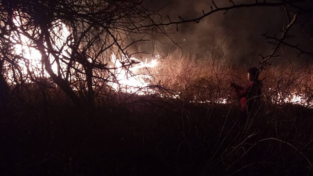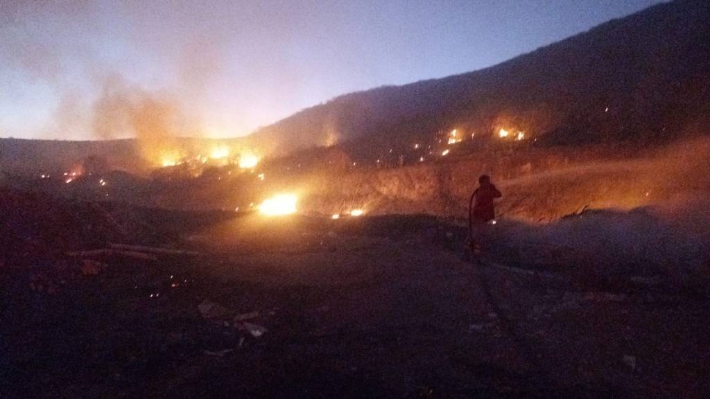 Iguala, Gro., marzo 22.- El personal de Protección Civil y Bomberos atendió el incendio forestal situado en el crucero de Iguala-Cocula, al sur de la ciudad, enfriando y apagando en su totalidad las llamas.