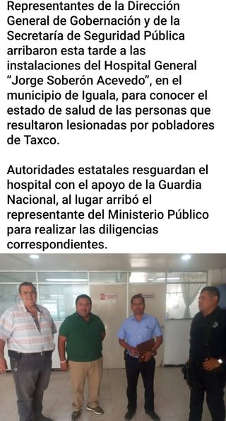El alcalde de Taxco Guerrero, en entrevista con Adela Micha mostró su inconformidad al decir “estamos consternados aquí en Taxco, y desgraciadamente no tenemos el apoyo de nuestra gobernadora…es triste. Hemos pedido el apoyo para que nos ayuden con la policía del estado, pero no se ha tenido”. Esto es lo que llama la atención, sí ya el Estado sabía desde un principio sobre los hechos ocurridos, como lo asegura la gobernadora en su comunicado del 28 de marzo por qué no le respondía la llamada al alcalde de Taxco, compartimos parte del comunicado: “…Cabe señalar que desde el primer momento en que se tuvo conocimiento del caso, se dispuso de un operativo de seguridad en el municipio…”.