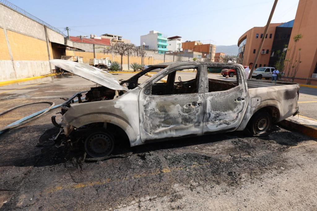 Con el apoyo de siete unidades de atención a emergencias, más de 30 bomberos estatales atendieron el reporte que se hizo a través del número de emergencias 911, logrando sofocar el fuego que afectó en su totalidad el tercer piso del edificio Montaña, así como a 15 vehículos que se encontraban estacionados al interior del recinto oficial, de los cuales 12 fueron pérdida total.