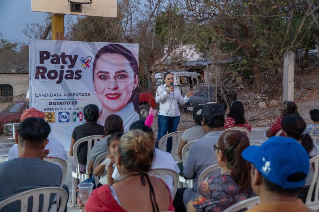 Iguala, Gro., abril 13.- La candidata a diputada local del 22 Distrito por la Alianza Fuerza y Corazón por México (PRD-PRI y PAN), Patricia Rojas Giles se reunió con familias de la colonia 24 de Febrero, parte alta, donde presentó sus propuestas legislativas y de gestión.