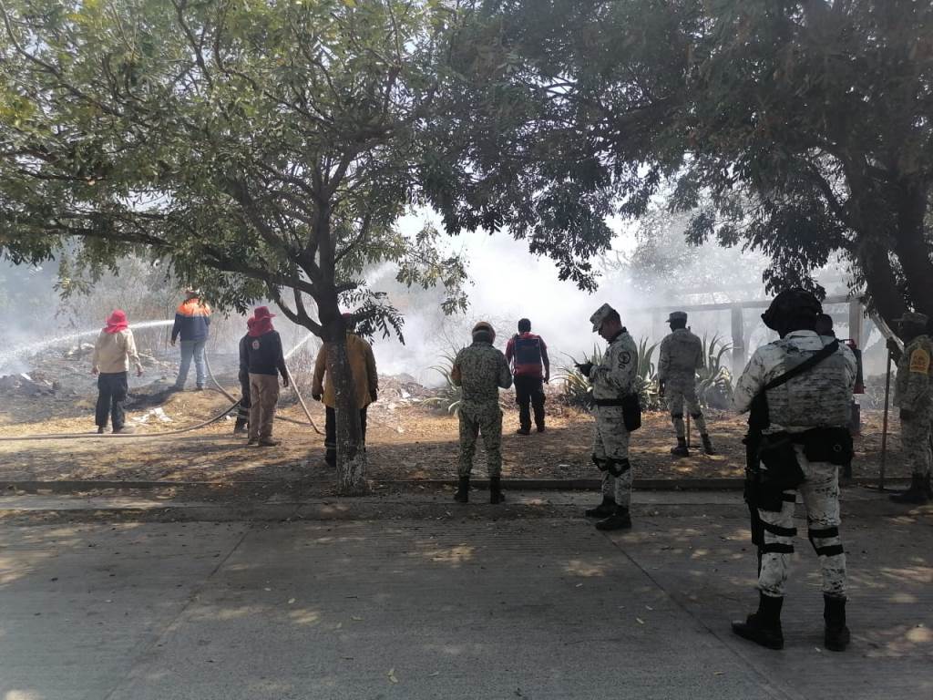 Las brigadas de PC acudieron con el apoyo de Guardia Nacional y SEDENA a apagar el fuego en un lote baldío, que se encuentra ubicado frente a las instalaciones del CENDI 6, el cual tenía pasto seco y llantas, por lo cual se fuego se dispersó por todo el terreno.