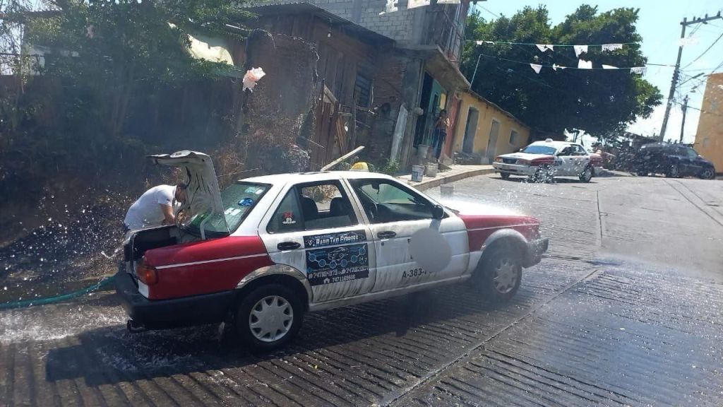 Al llegar al lugar de los hechos, los Policías Estatal visualizaron un conato de incendio de un taxi del servicio público, provocado por un corto circuito.