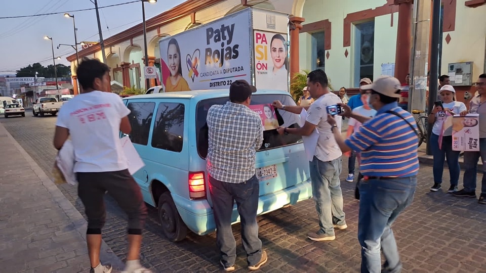 Iguala, Gro., abril 18.- La candidata a la diputación local del 22 Distrito Electoral de Fuerza y Corazón por México (PRD-PRI y PAN), Patricia Rojas Giles llevó a cabo reuniones con líderes de izquierda y pega de microperforados, como parte del reforzamiento de su proyecto político con miras a ganar la elección del 2 de junio.