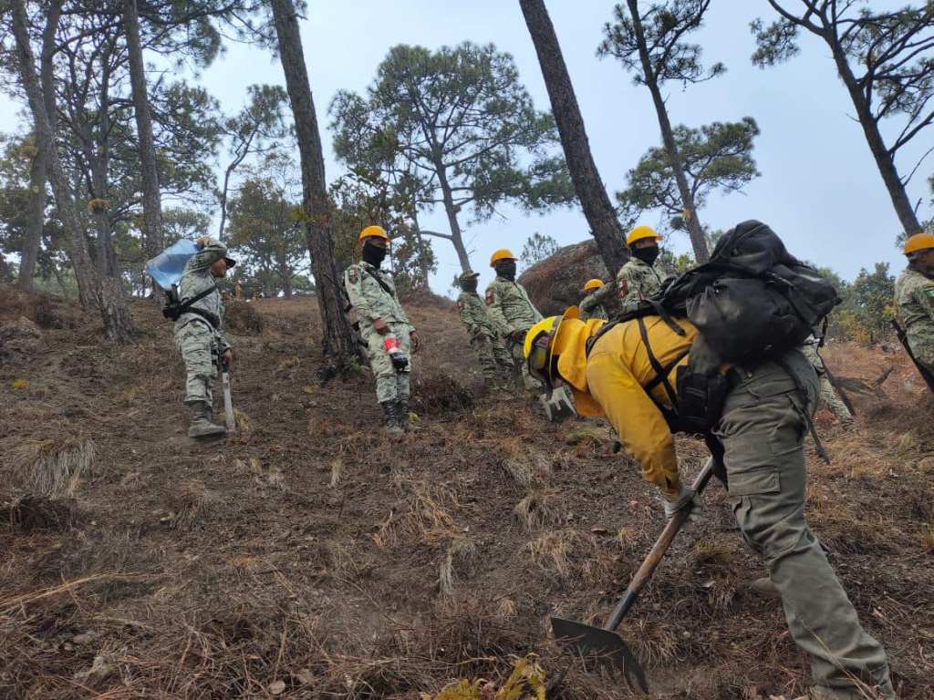 En las labores de combate participa brigadistas de la Secretaría de la Defensa Nacional, Comisión Nacional Forestal, Guardia Nacional, Secretaría de Gestión Integral de Riesgos y Protección Civil, Secretaría de Medio Ambiente y Recurso Naturales, autoridades municipales y grupos voluntarios.