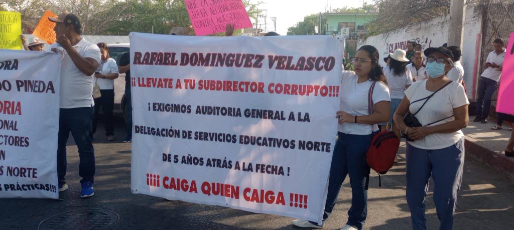 Trabajadores de base de la oficina delegacional de Servicios Educativos en la zona norte, tomaron esta mañana vialidades en apoyo a Salomón Beltrán Barrera a una semana del conflicto que se dio por la notificación de conclusión de comisión laboral de una de las trabajadoras que respaldada por la representación del SNTE, hoy exigen la salida del funcionario.