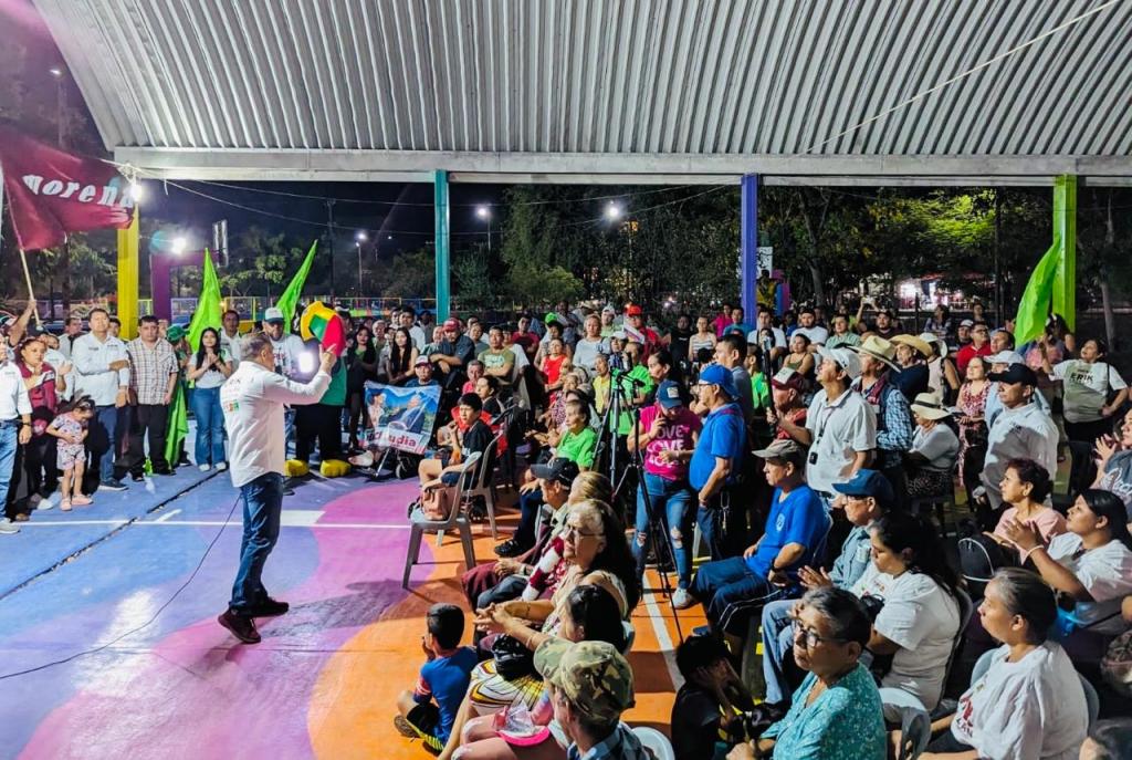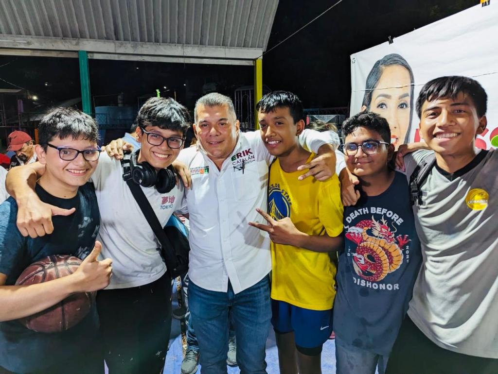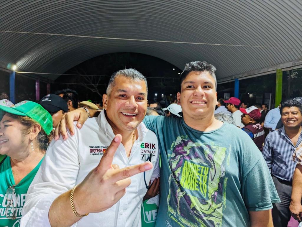 En el evento público realizado en la cancha de la colonia “24 de febrero”, el candidato Catalán Rendón coincidió con la candidata de Morena a diputada local por el distrito 22, Luissana Ramos Pineda, quien dijo a los asistentes “En Morena tenemos un candidato a Presidente municipal, Erik Catalán, a quien vamos a llevar al triunfo”.