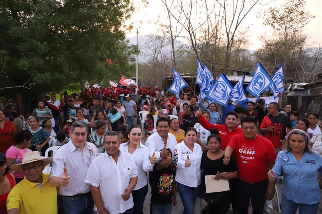 En su mensaje, el candidato a presidente municipal, David Gama Pérez, dijo que sólo con unidad y trabajo en equipo podrán aterrizar recursos y programas en beneficio de los sectores más vulnerables, así como para una mejor infraestructura en el municipio.