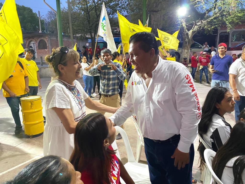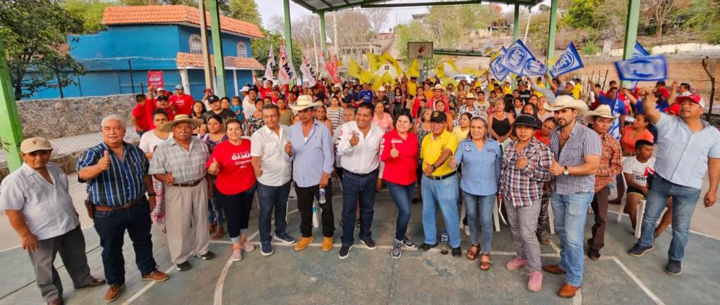 Iguala, Gro., mayo 5.- El candidato de la alianza Fuerza y Corazón por México, David Gama Pérez sumó el apoyo y respaldo de los habitantes de Joya de Paintla, Pantla de Zapotal y Ceja Blanca porque lo conocen y es un verdadero líder con visión, pasión, trayectoria y compromiso con el progreso.