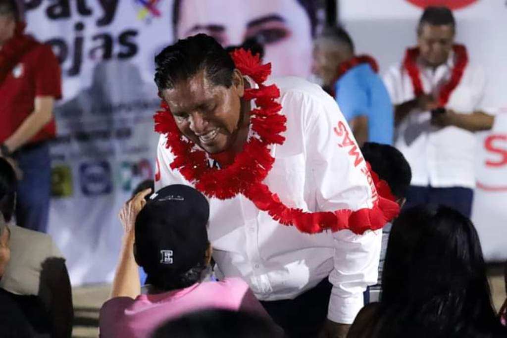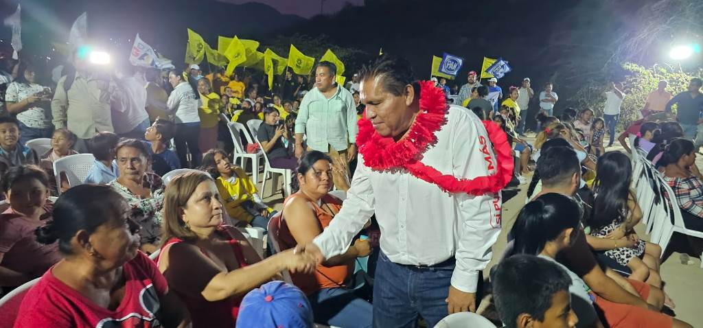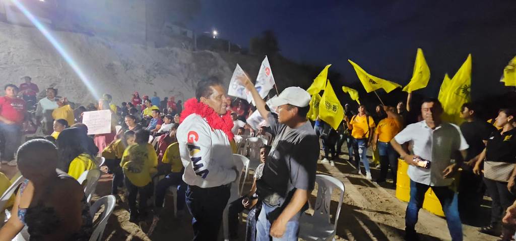 En su mensaje, David Gama Pérez dijo: «hoy hago un compromiso con ustedes, vecinos de la colonia María de los Ángeles, el drenaje se va a concluir hasta la carretera, entiendo que a esta colonia le hace falta mucho, apoyennos este 2 de junio y vamos a poner guapa a esta colonia».