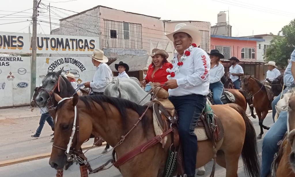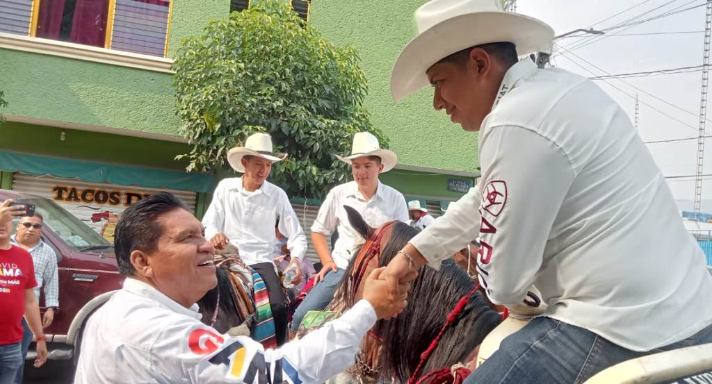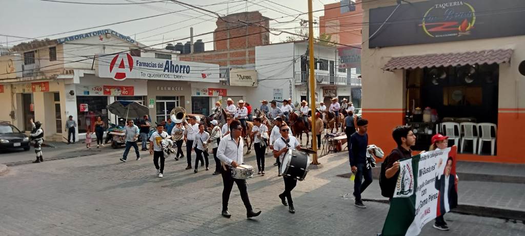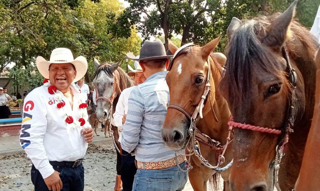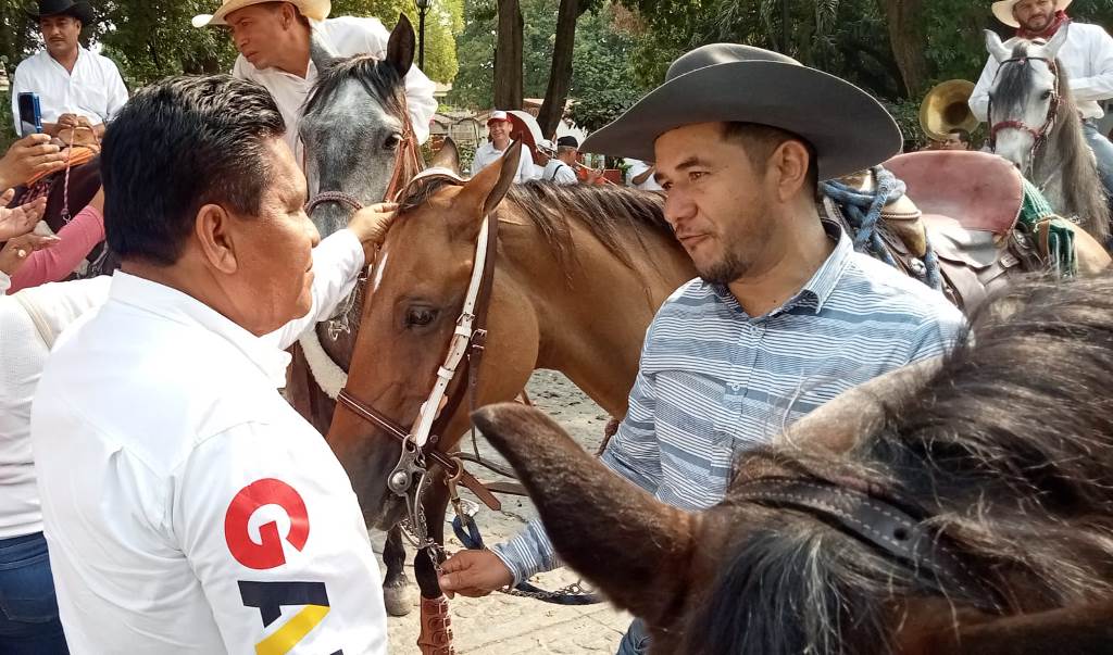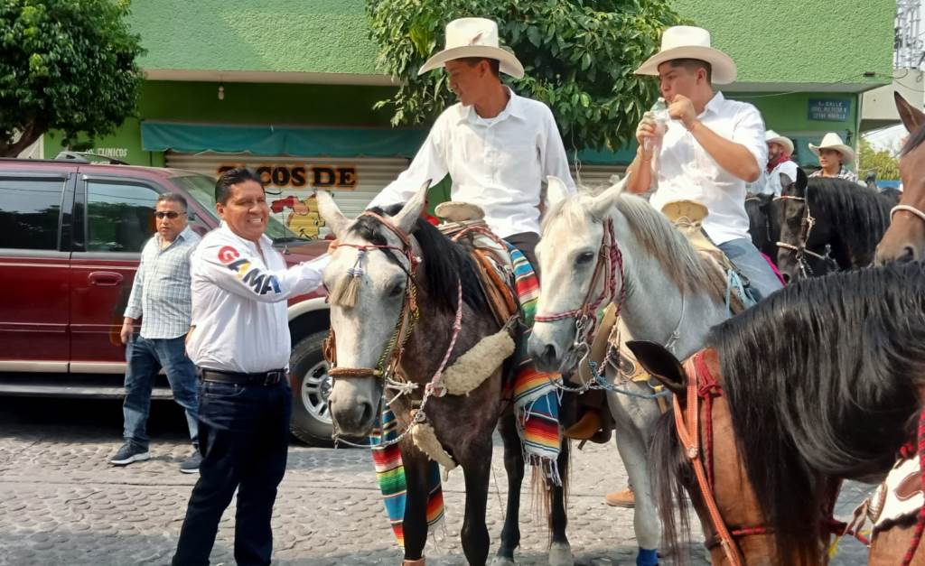 Iguala, Gro., mayo 12.- En un ambiente de fiesta y música de banda, el candidato de Fuerza y Corazón por México, David Gama Pérez, participó en la cabalgata con la cuadrilla de Iguala «Mi gusto es», quienes le refrendaron su apoyo para ganar las elecciones el 2 de junio.