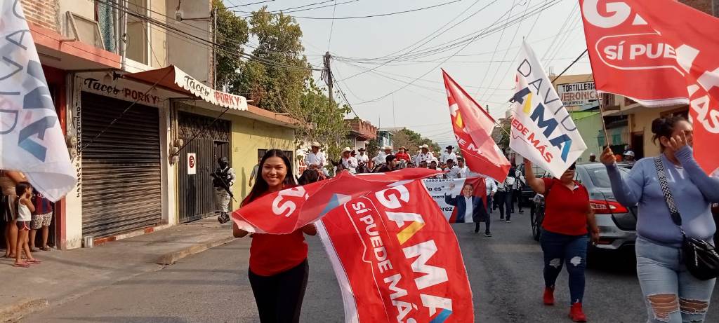 Partiendo de la Alameda Municipal, se tomó la calle Reforma hasta llegar al Monumento a la Bandera y continuar por la calle de Álvarez, hasta el periférico, más de cien personas acompañaron al son de «Puños de tierra», «Caminos de Michoacán», «Mi gusto es», «Dos vicios», entre muchos otros temas y porras al candidato, quienes en todo momento mostraron su empatía por David Gama, mientras le reiteraban los jinetes, banda y público en general su apoyo el próximo 2 de junio.
