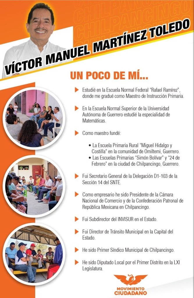 Durante los últimos días, el candidato de Movimiento Ciudadano a la Alcaldía de Chilpancingo, Víctor Manuel Martínez Toledo, ha intensificado sus actividades de proselitismo.