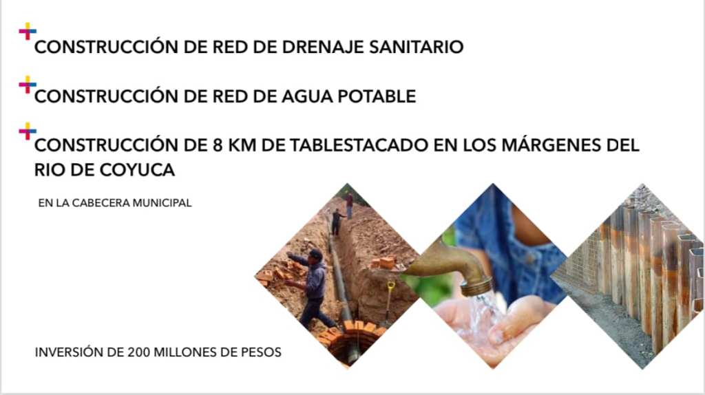 Bajo la premisa de que «para problemas grandes, grandes soluciones en Coyuca», y de que no va a llegar a tapar baches ni a pintar guarniciones, Alfredo Cabrera expuso la necesidad de desarrollar megaproyectos tanto en el turismo, como en la renovación integral de la red de agua potable y drenaje en la cabecera municipal, Tixtlancingo, Aguas Blancas, Bajos del Ejido y Tepetlixta.