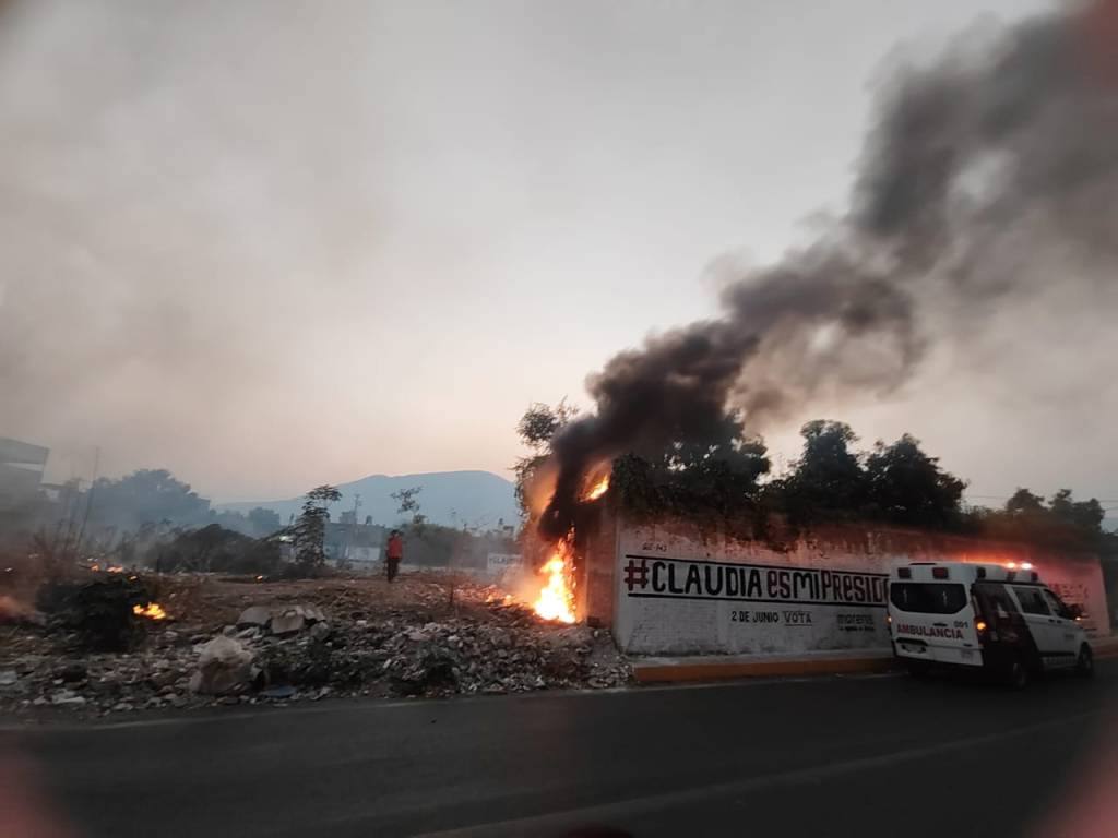 Era un incendio en terreno baldío en la calle Hinojosa esquina con Pineda. Las llamas consumieron 400 metros cuadrados de pasto seco y basura, posteriormente se logró apagar.