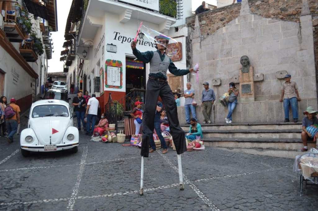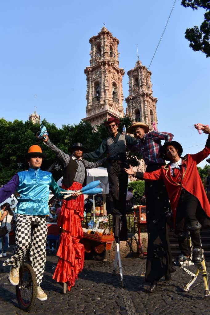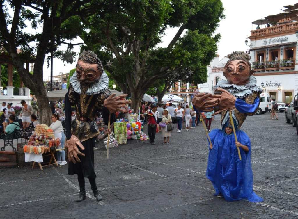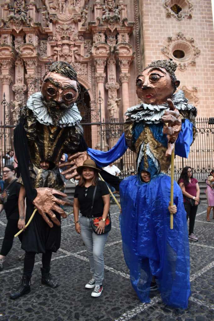 En el primer día de actividades, el pueblo taxqueño disfrutó en sus calles de pregoneros, zanqueros, actos circenses y títeres monumentales de Siglo de Oro.