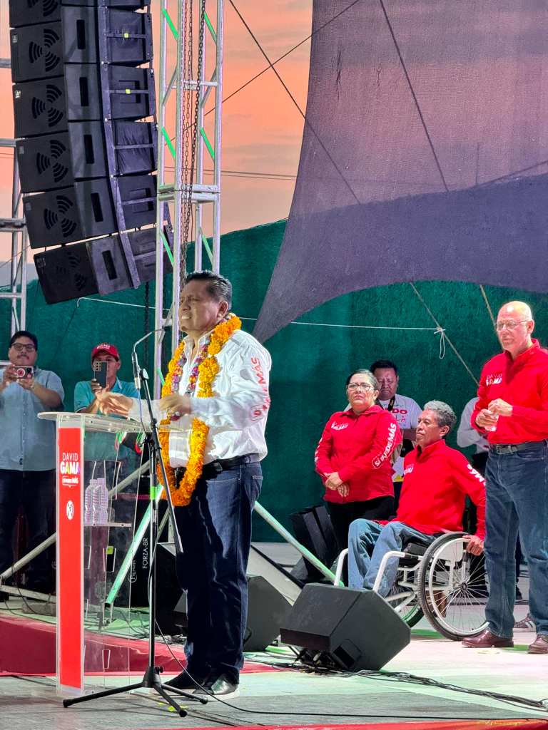 Acompañaron a David Gama, el candidato a la diputación federal por el Distrito VI, Gerardo Lara; las candidatas a diputadas locales por el Distrito 22, Patricia Rojas Giles y del Distrito 23 Aracely Romero.