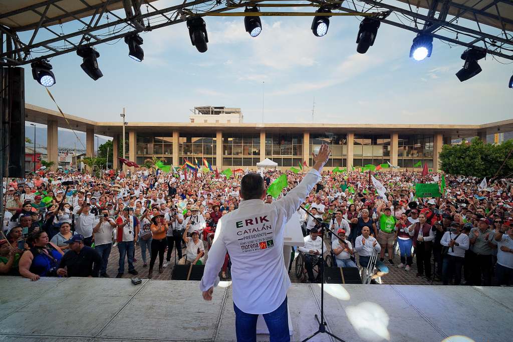 Al cerrar su campaña en una explanada municipal llena, Erik Catalán indicó desde el momento mismo en “que tengamos nuestra constancia de mayoría como Presidente Municipal electo, empezaremos a tocar las puertas necesarias para implementar verdaderas estrategias de atención, acordes con las necesidades y demandas de nuestra población”.