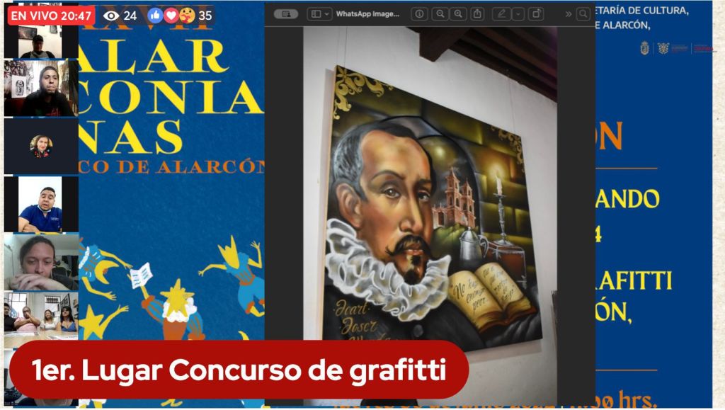 En sesión virtual, la titular de Cultura estatal, Aída Melina Martínez Rebolledo premió al escritor, Daniel Medina, ganador del Bando Alarconiano 2024, originario de Mérida, Yucatán, por la creación de la pieza poética: «Elogio descriptivo de la serenísima estatura y patizamba manera del andar de Juan Ruiz de Alarcón», en un poema que también padece acondroplasia y cifosis.
