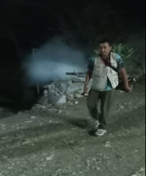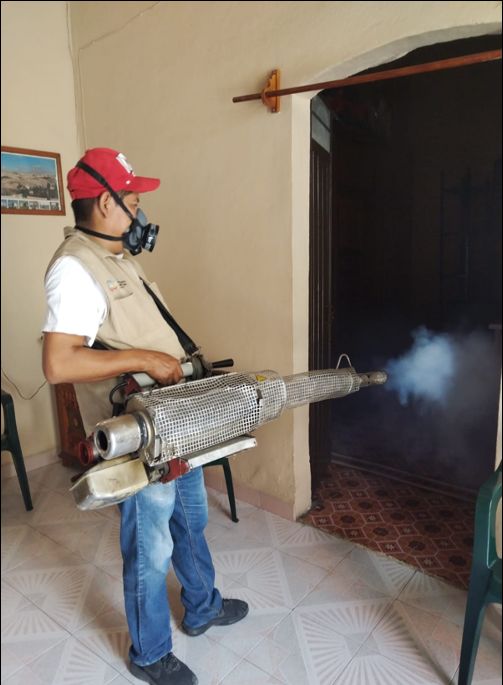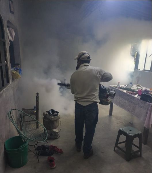 Personal de vectores con máquinas térmicas rociaron 8 hectáreas, equivalente a 166 casas para proteger a 664 habitantes. Además la nebulización espacial se realizó en 250 hectáreas, abarcando 6 mil 250 casas y protegiendo a 28 mil 125 habitantes.