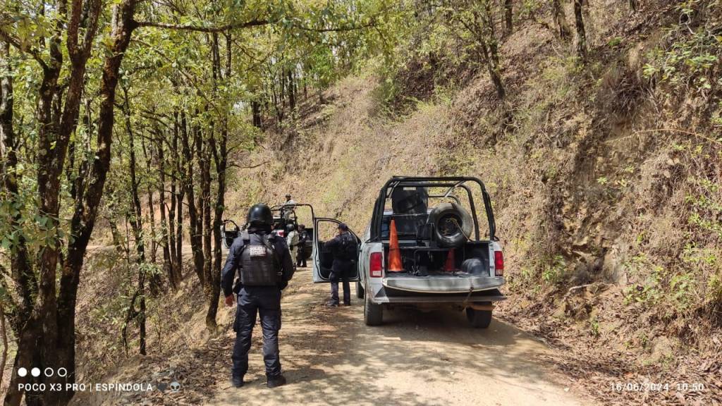 La Policía Estatal mantiene acciones coordinadas de vigilancia con personal de la Secretaría de la Defensa Nacional y Guardia Nacional en localidades de los municipios de Metlatónoc y Cochoapa el Grande, como parte de los operativos de seguridad en esa zona de la Montaña de Guerrero.