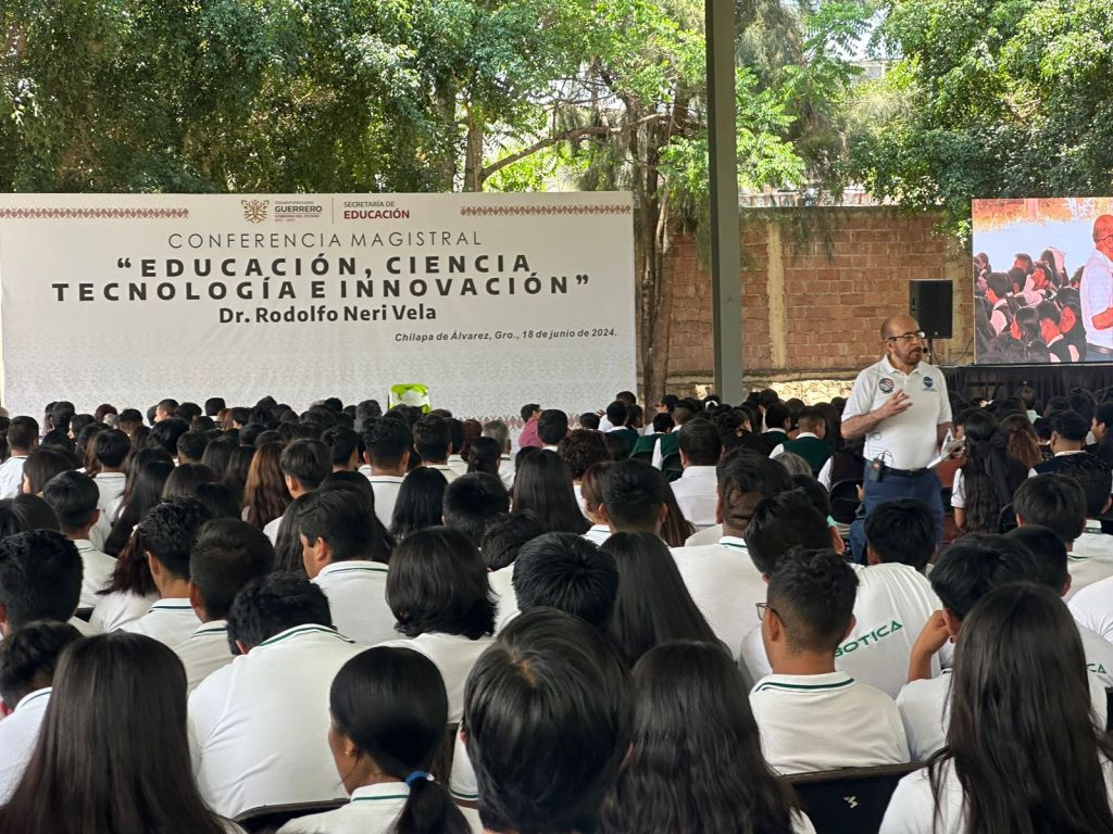 Chilapa, Gro., 18 de junio del 2024.- Más de mil estudiantes y docentes de la región de la Montaña baja asistieron a la Conferencia Magistral Del doctor, Rodolfo Neri Vela, primer Astronauta mexicano, realizada por la Secretaría de Educación Guerrero.