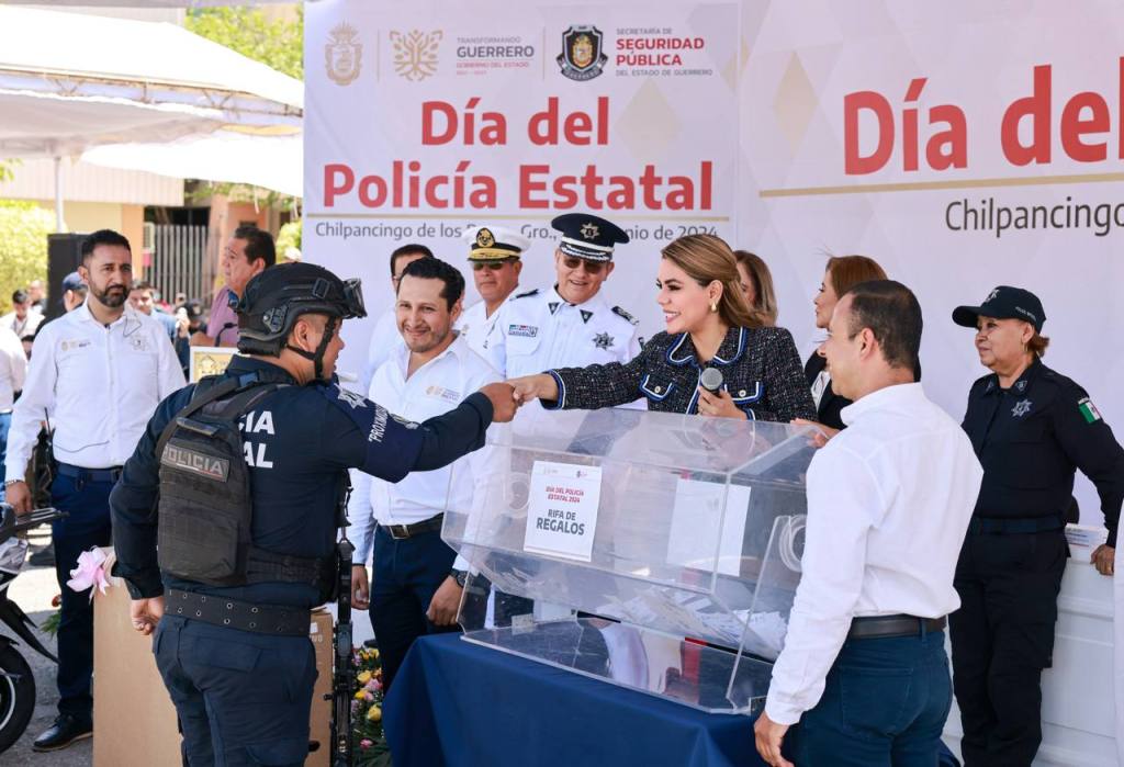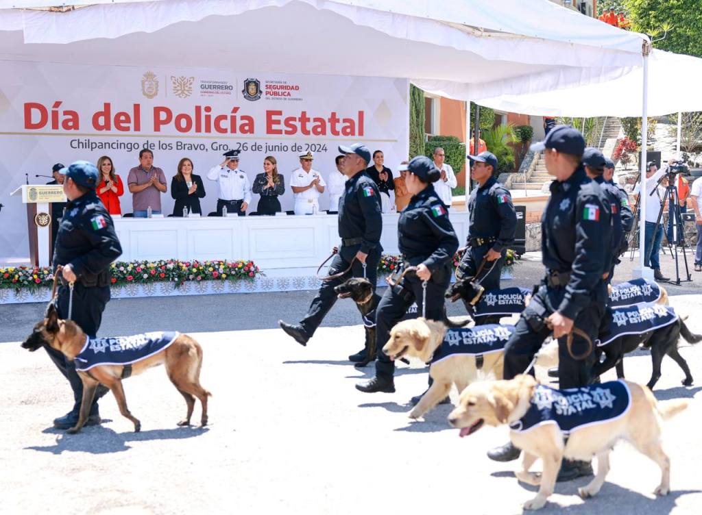 En este emotivo evento, acompañada por los representantes de los tres poderes del estado, así como el Senador Félix Salgado Macedonio, la gobernadora reconoció el enorme trabajo de las mujeres y los hombres uniformados que cuidan de las familias guerrerenses con valor, disciplina y compromiso que se manifiestan todos los días con eficiencia, profesionalismo, honradez y respeto a los derechos humanos.