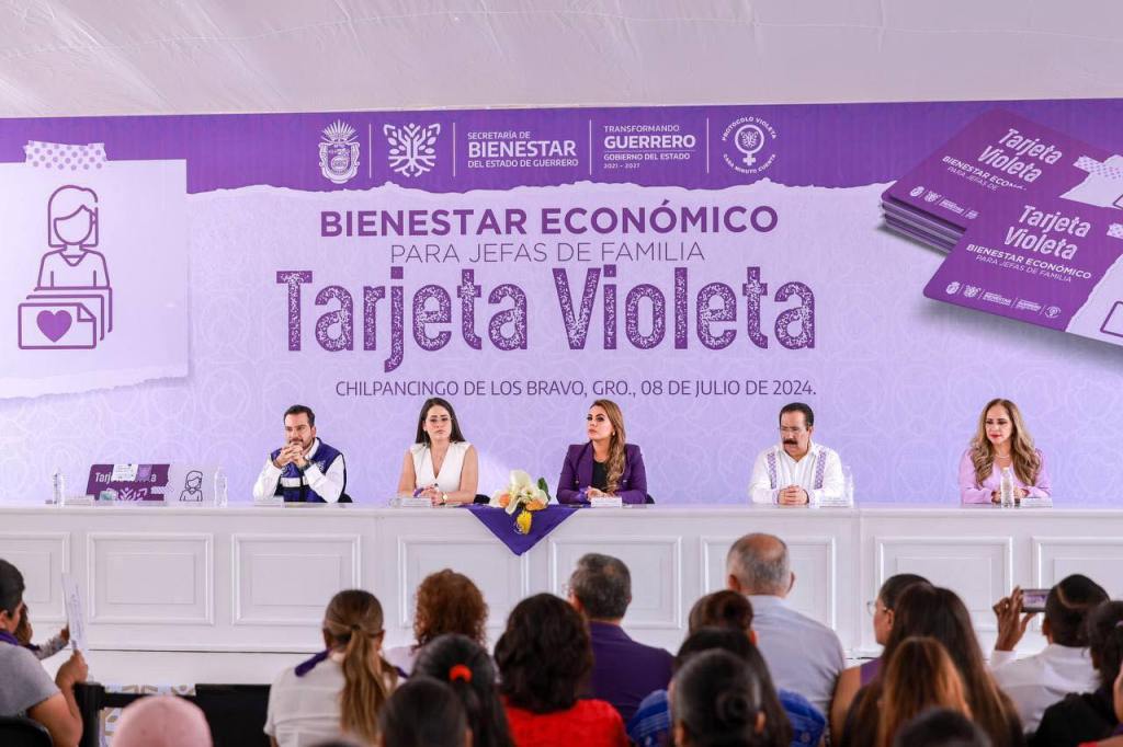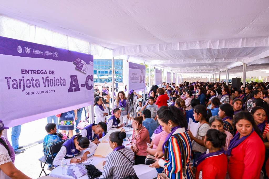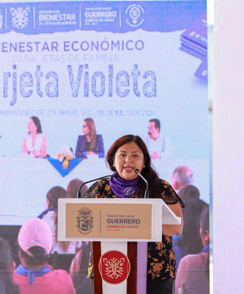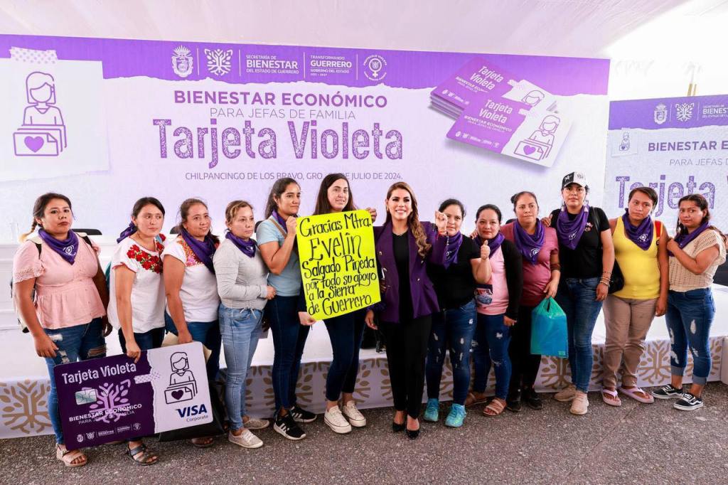 Chilpancingo, Gro., 8 de julio de 2024. – En una acción sin precedentes y con un marcado sentido humanista, la gobernadora Evelyn Salgado Pineda dio arranque a la entrega del programa “Tarjeta Violeta”, que brinda seguridad económica y desarrollo integral a las mujeres en situación de vulnerabilidad, beneficiando, en su primera fase, a 3 mil mujeres jefas de familia, con una inversión de casi 19 millones de pesos.