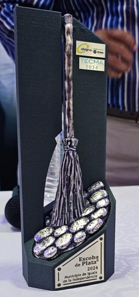 Iguala, Gro., julio 11.- El presidente municipal, David Gama Pérez, presentó ante los medios de comunicación y la sociedad el premio “Escoba de Plata 2024” que la Asociación Técnica para la Gestión de Residuos y Medio ambiente (ATEGRUS), con sede en Bilbao, España, otorga a los gobiernos de Iberoamérica, que se caracterizan por su labor en favor del medio ambiente, con la cual se deja un gran legado.