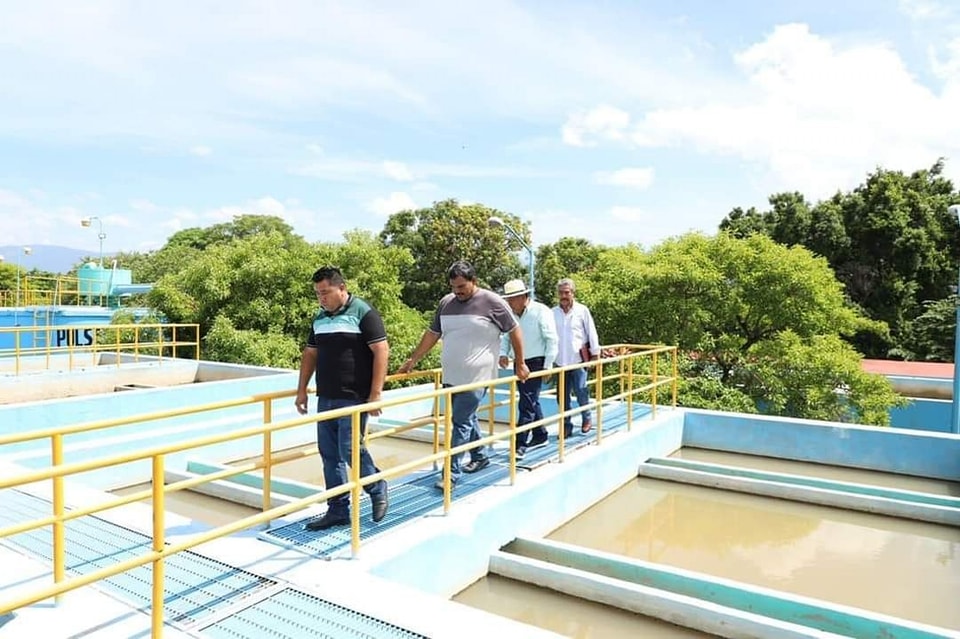 Iguala, Gro., julio 13.- El presidente municipal de Iguala, David Gama Pérez y el director de la Comisión de Agua Potable y Alcantarillado del Municipio de Iguala ( CAPAMI), Miguel Ángel Orduña Estrada realizaron un recorrido de supervisión en la planta potabilizadora para corroborar el estado y verificar que el agua llegue de forma correcta a los hogares de las familias igualtecas.