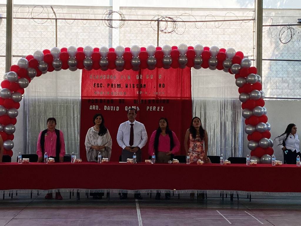 Iguala, Gro., julio 16.- En representación del Presidente Municipal de Iguala David Gama Pérez, la regidora de Educación y Juventud Celia Mireya Martínez Domínguez asistió a la ceremonia de clausura de la generación 2018-2024 de la Esc. Prim. “Nissan 80”, que dirige Homero Limón Pineda.