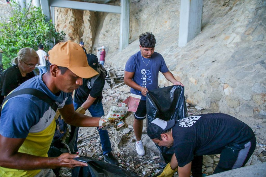 De manera conjunta las secretarías de Turismo, de Gestión Integral de Riesgos y Protección Civil, así como la Administradora y Promotora de Playas, con apoyo de los clavadistas de la Quebrada, refuerzan acciones de limpieza para retirar escombros y basura.