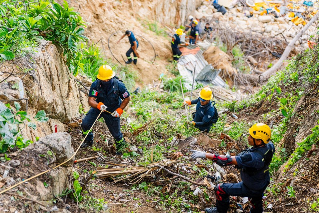También se sumaron a los trabajos de limpieza elementos de rescate de Protección Civil estatal, quienes equipados, descendieron por uno de los principales riscos de La Quebrada, informó Ricardo Ramírez Ibarra, subsecretario de Gestión Integral y Protección Civil del estado.