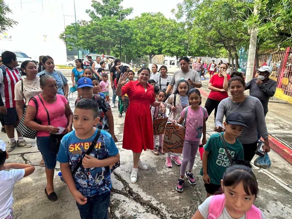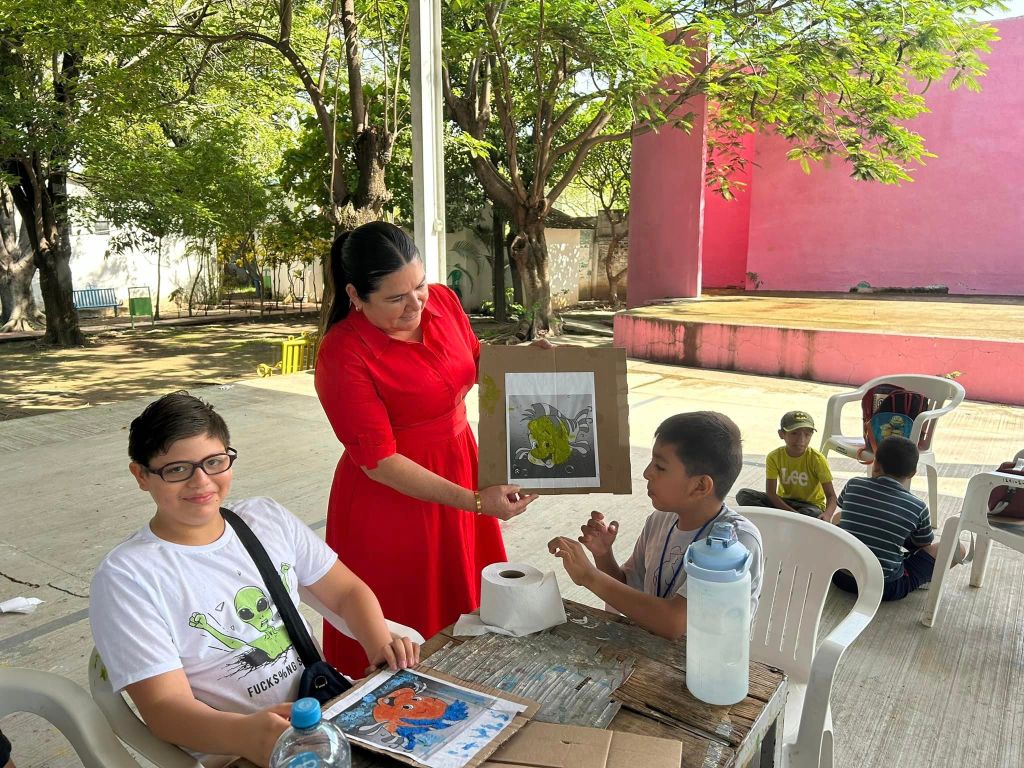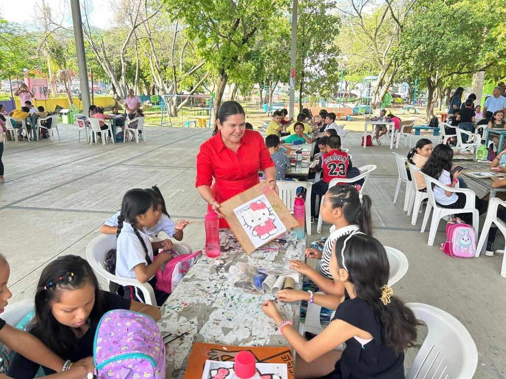La titular del DIF municipal, Antonia Cardozo, recorrió cada uno de los talleres que realizan las pequeñas y pequeños, donde pudo saludarlos y verificar que no tuvieran ningún problema durante su estadía en este parque del DIF.