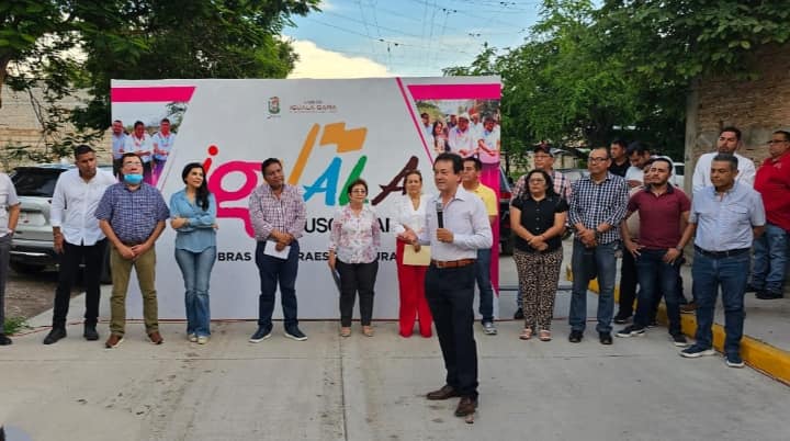 Iguala, Gro., julio 24.- El presidente municipal, David Gama Pérez, inauguró las pavimentaciones de las calles prolongación Trinidad Mastache en la colonia Ampliación San José y Vicente Suárez y Porfirio Camarena en la Luis Quintero, que beneficia a familias del lugar y colonias aledañas.