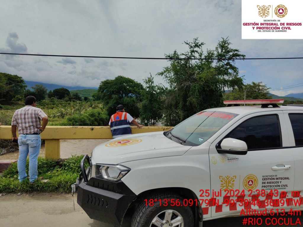 Chilpancingo, Gro., 25 de julio de 2024.- Personal operativo de la Secretaría de Gestión Integral de Riesgos y Protección Civil en las regiones Norte, Tierra Caliente y Centro, se mantienen en alerta preventiva y activaron los protocolos de monitoreo al nivel del cauce del Río Balsas, el cual ha presentado un incremento en su caudal, derivado de las últimas lluvias que se han registrado en los vecinos estados de Morelos y Puebla.