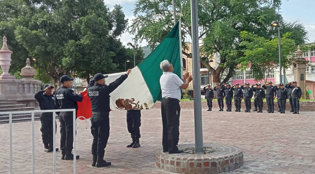 Iguala, Gro., julio 30.- Con la representación del presidente municipal, David Gama Pérez, la síndica Nayeli Salmerón Mora, asistió al izamiento de bandera a media asta por el 213 Aniversario Luctuoso del Miguel Hidalgo y Costilla, considerado padre de la patria.