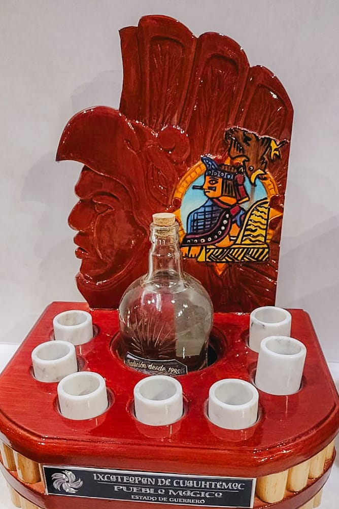 Para el caso de Guerrero, Ixcateopan de Cuauhtémoc está representado por medio de una artesanía compuesta que representa la mexicanidad profunda: La efigie del último Huey Tlatoani, Cuauhtémoc, tallada en madera que es, a su vez, una base que contiene una botella de mezcal, uno de los productos con denominación de origen con los que se cuentan en la entidad y siete pequeños vasos tallados en mármol.