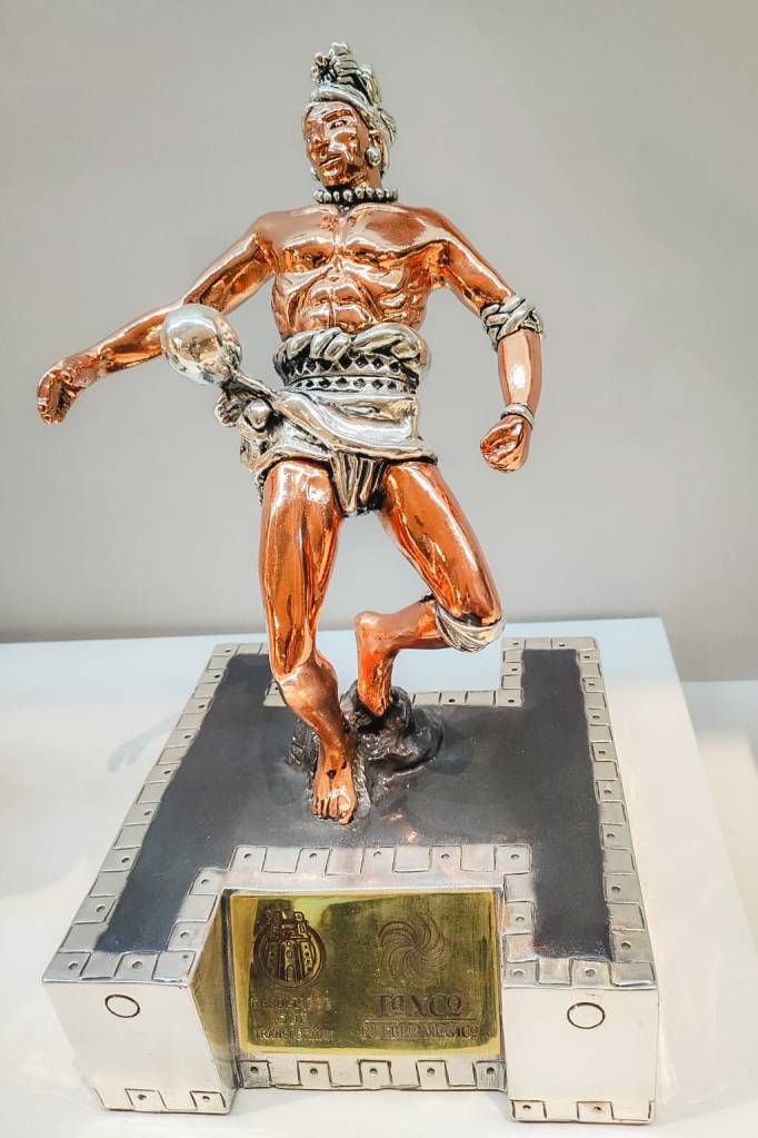 La dependencia estatal, dijo que esta incorporación se suma a la escultura en plata del jugador de pelota, que representa a Taxco de Alarcón.