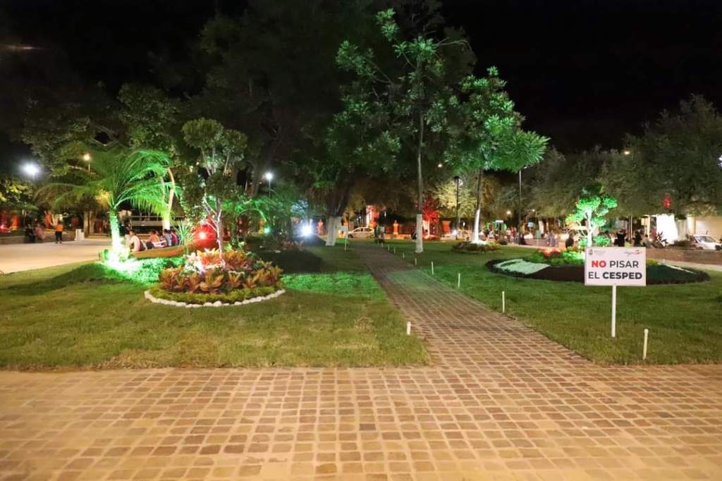 Verifica David Gama la jardinería y el alumbrado en el Zócalo.