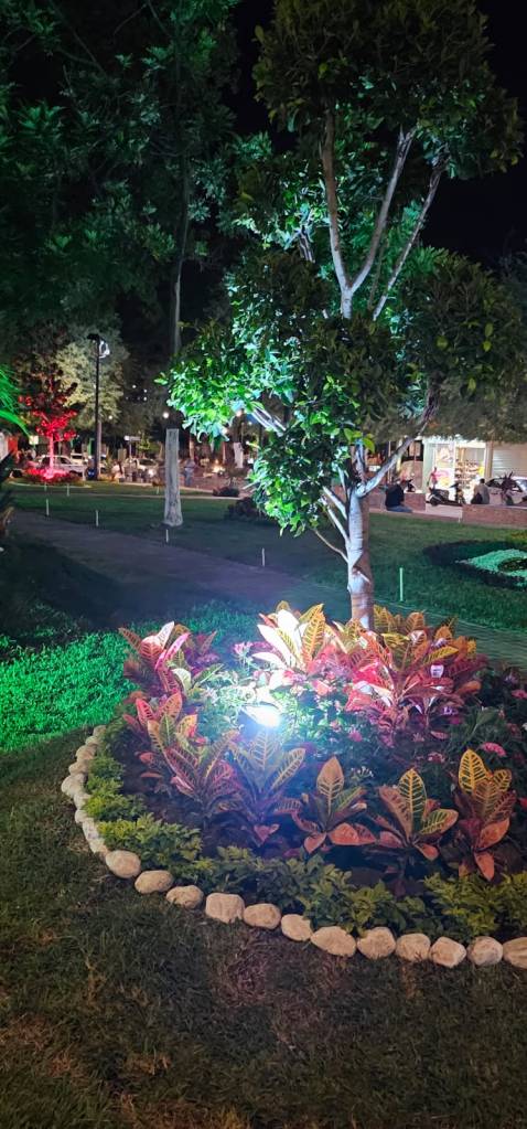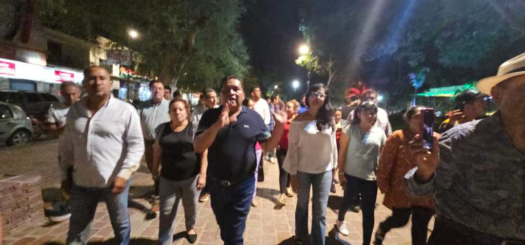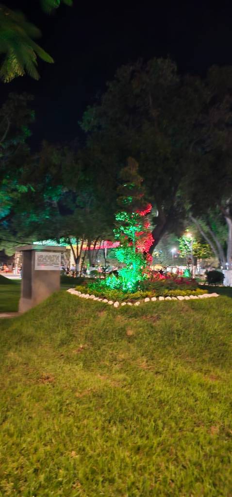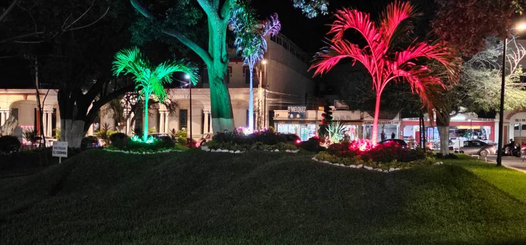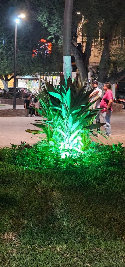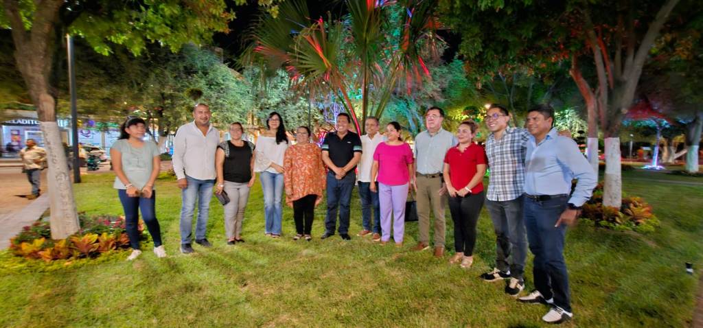 Iguala, Gro., septiembre 9.- Arropado por los síndicos Nayeli Salmerón Mora y Óscar Díaz Bello y los regidores, el presidente municipal, David Gama Pérez, realizó un recorrido de verificación por el Zócalo, previo a la inauguración de las jardineras y alumbrado alusivo al mes de septiembre.