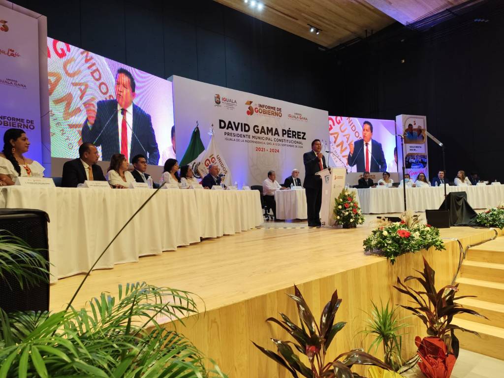 Iguala, Gro., septiembre 12.- “Iguala es un ejemplo de progreso y desarrollo para nuestro Estado y para el país. Con mucho orgullo podemos decir que Iguala se puso guapa”, afirmó el presidente municipal de Iguala, David Gama Pérez, al rendir su 3er. Informe de Gobierno.
